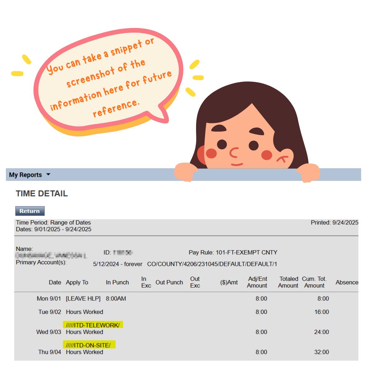 4. Now that you've found the codes you utilize most, it may be helpful to take a snippet to save for future reference. This data will especially come in handy when we migrate to Pro Workforce Management.