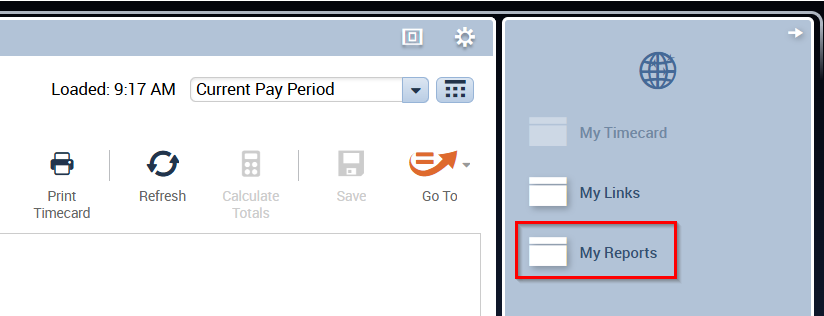 1. In (UKG) Workforce Central, navigate to the right-side panel and select the option: My Reports.