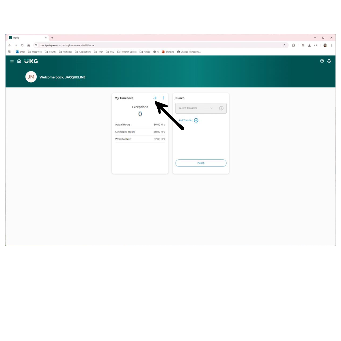 To approve your timecard, select the arrow pointing right, in the ‘My Timecard’ tile.
