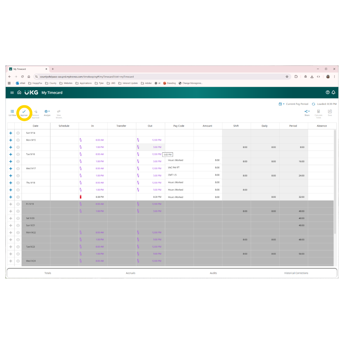 Your timecard will open as so, and you can select ‘Approve’ towards the top left.