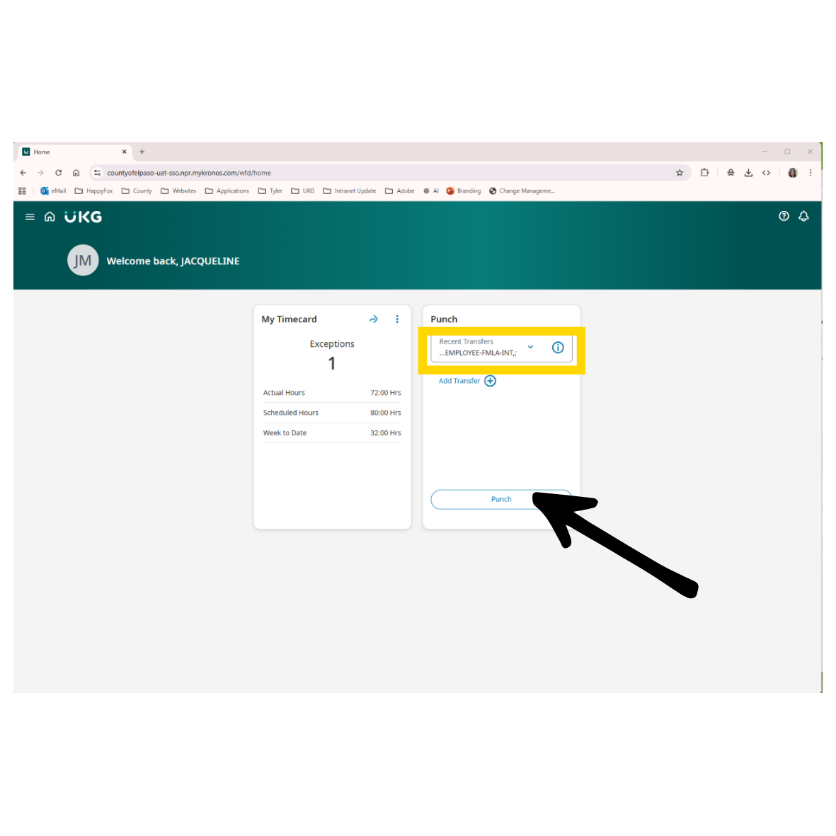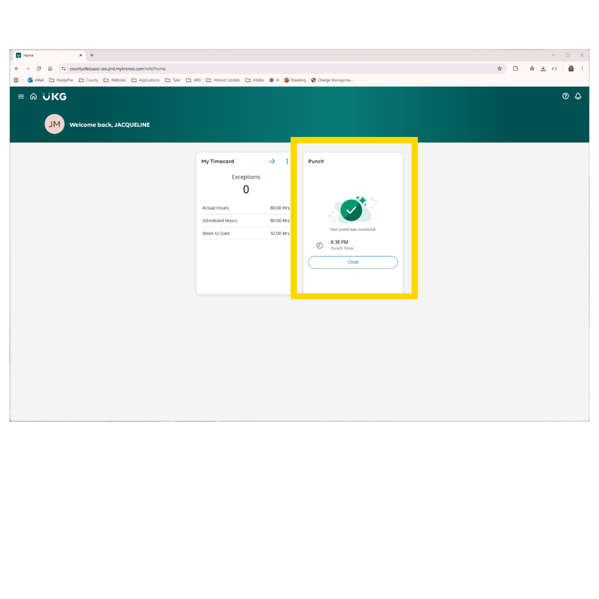 This is your homepage. You can select ‘Punch’ to punch in or out.