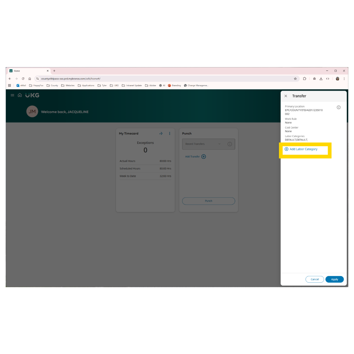 Next, you will select ‘Apply’ twice on the bottom right corner. Your transfer code will be saved in the ‘Recent Transfers’ going forward. Then select ‘Punch’.